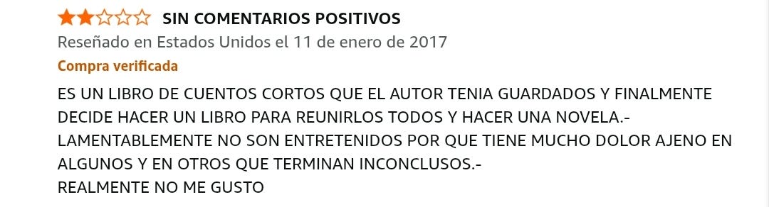 Y como cierre, lo que nos incumbe hoy: no le gustó porque muchos relatos estaban inconclusos.